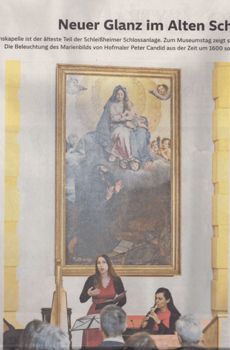 Almara durfte die Eröffnungsveranstaltung der Wilhelmskapelle im Alten Schloss Schleißheim musikalisch gestalten, über die in der Süddeutschen Zeitung vom 16.05.2025 berichtet wurde. Passend zu dem im Zentrum stehenden Gemälde von Peter Candid (ca. 1548–1628) war frühbarocke italienische Musik in dem nach italienischer Bauweise errichteten Gebäude zu hören. Außerdem wird der Auftritt in der Schleißheimer Zeitung (14.05.2025) erwähnt: