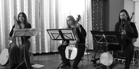 Das Ensemble Almara spielte im Schloss Haimhausen und umrahmte das Jubiläum musikalisch (Foto: Karin Lübbers). Der Artikel findet sich unter: